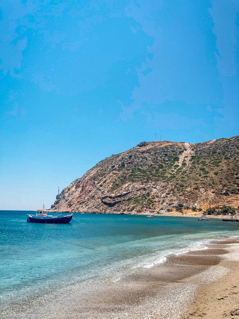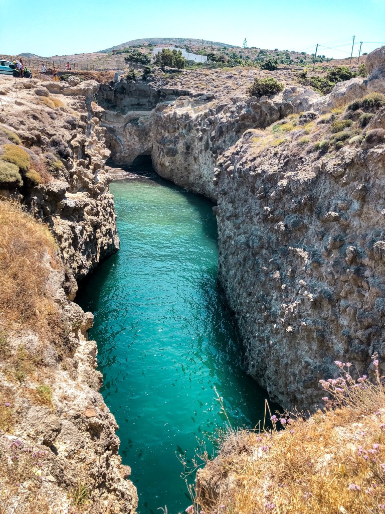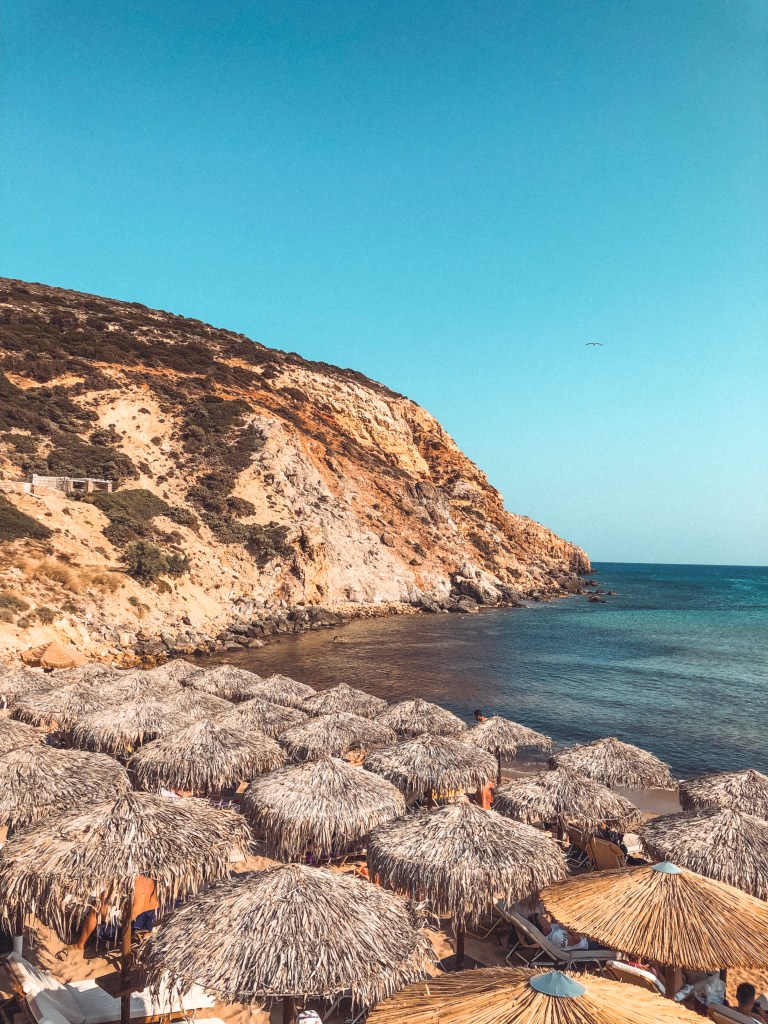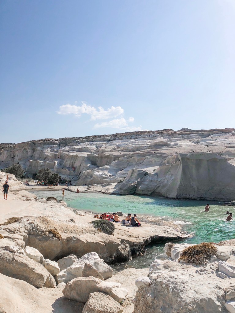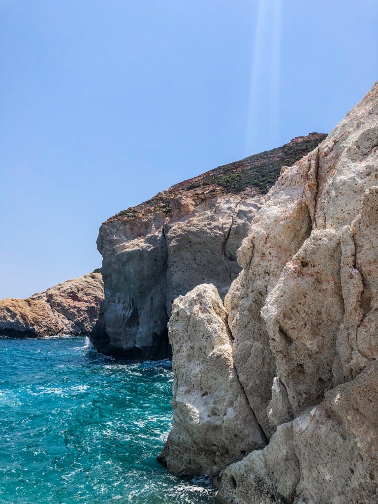 You can’t come to Milos without checking out Sarakiniko. If you google Milos, this is the beach you will see in all the pictures. It’s a bit surreal, feels like you’ve landed on the moon and definitely a sight to see. Its unique white rocks were shaped by the wind and waves. Make sure you explore the caves too!
