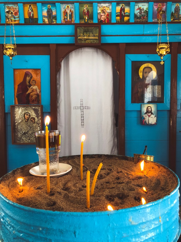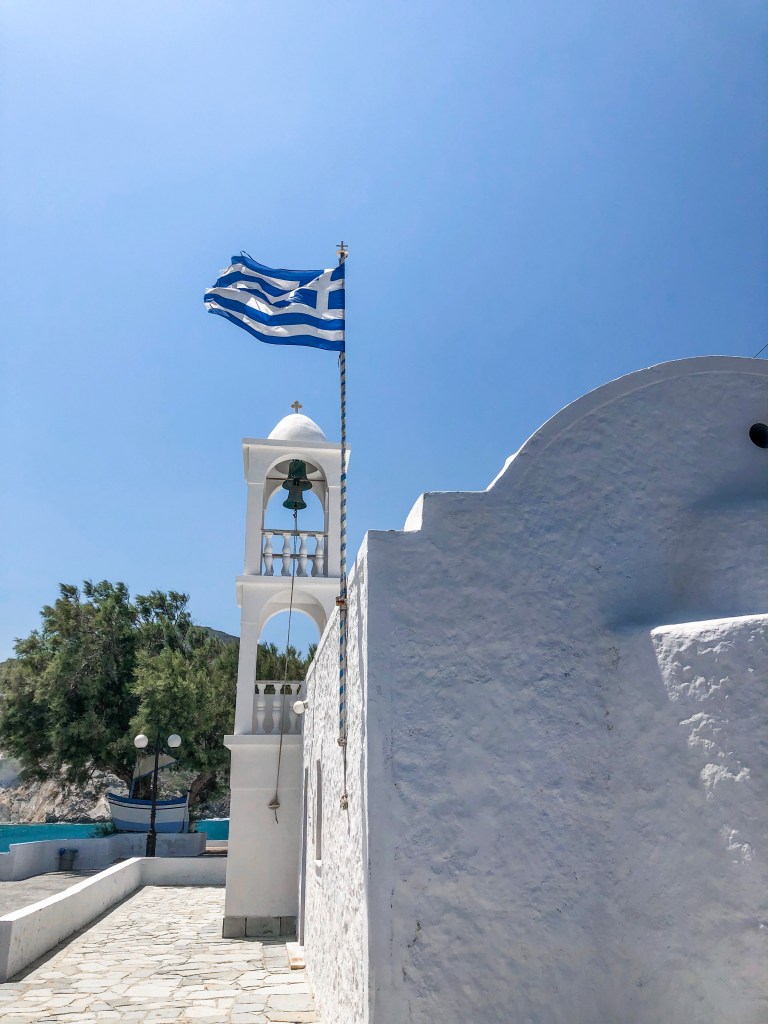 With its beautiful white and blue church overlooking the beach, it’s a nice little beach to check out. Make sure you climb up behind the church for a view!